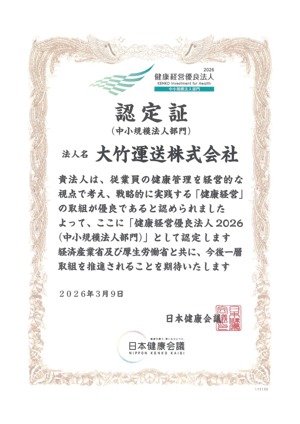 INFORMATIONお知らせ HOME 会社案内 事業所・倉庫 保有車両 事業紹介 採用情報 お問い合わせ HOME > お知らせ > 健康経営優良法人2026認定 健康経営優良法人2026認定 2026.04.01 « 古い記事へ